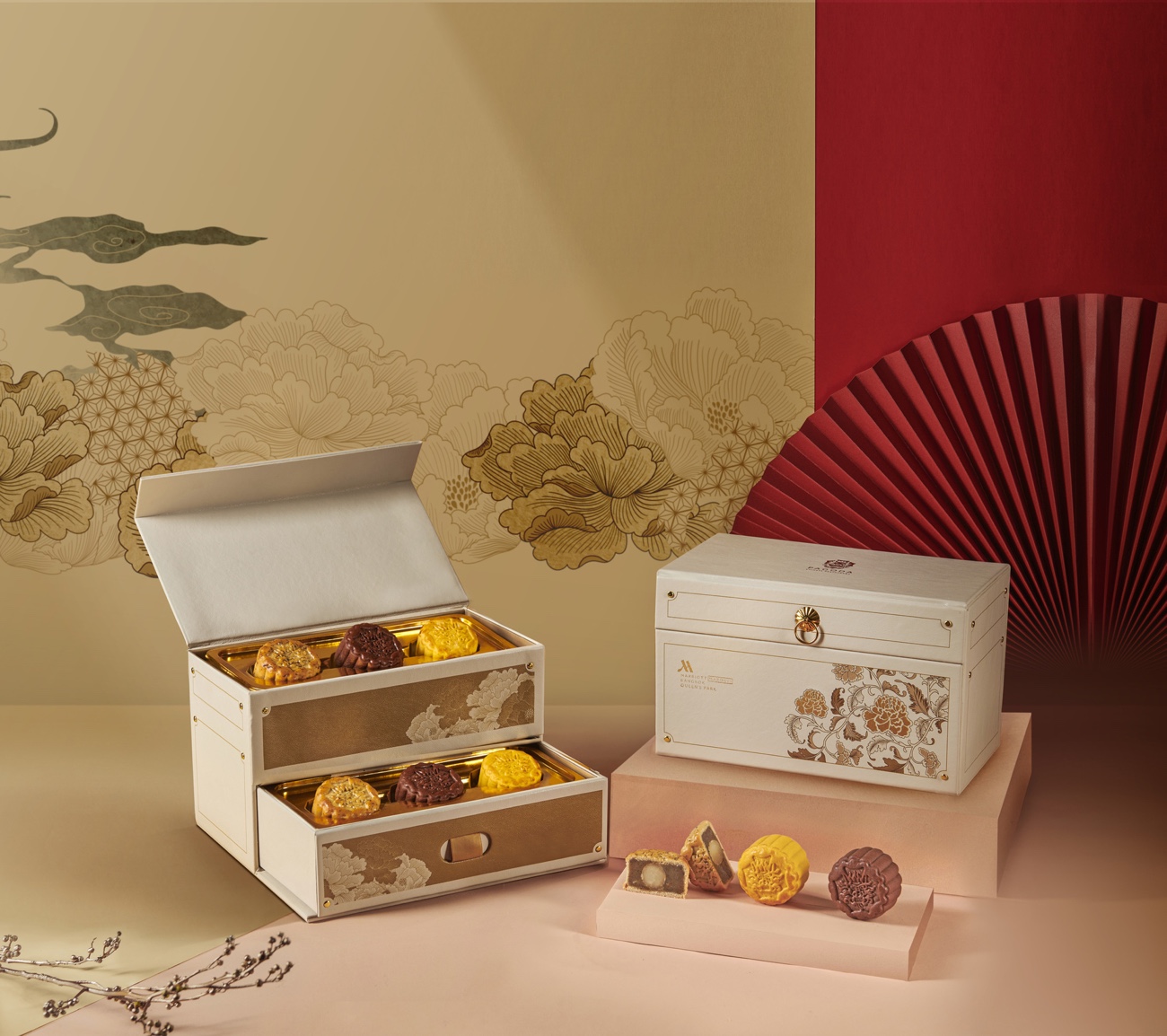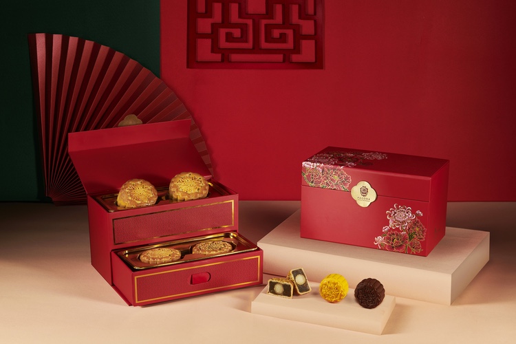 ความพิเศษของปีนี้ ทางห้องอาหารจีนพาโกด้า ไชนีส เรสเตอรองท์ มีกล่องมาให้เลือกถึง 2 แบบด้วยกันคือ “เดอะ มาร์คีส์ ” กล่องหนังสีงาช้างสุดหรูหรา ราคาเริ่มต้นอยู่ที่ 1,888 บาท และ “เดอะ คลาสสิก” กล่องสีแดง ราคาเริ่มต้นอยู่ที่ 999 บาท โดยทั้ง 2 แบบมาในดีไซน์รูปทรงหีบสมบัติสไตล์ร่วมสมัย พิมพ์ลวดลายดอกโบตั๋น สามารถบรรจุขนมไหว้พระจันทร์สูตรดั้งเดิมขนาด 150 กรัม จำนวน 4 ชิ้น หรือขนมสูตรซิกเนเจอร์ขนาด 50 กรัม จำนวน 6 ชิ้น อีกทั้งยังสามารถตกแต่งด้วยโลโก้ของบริษัทเพื่อมอบเป็นของขวัญที่ยอดเยี่ยมสำหรับมิตรภาพทางธุรกิจในช่วงเวลาอันเป็นมงคลนี้