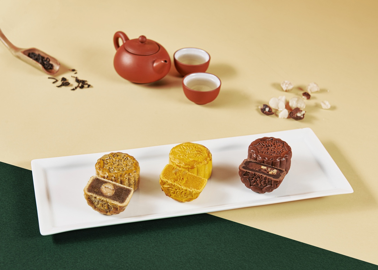 นอกจากนี้เชฟยังได้รังสรรค์ขนมไหว้พระจันทร์สูตรซิกเนเจอร์อันเป็นเอกลักษณ์สำหรับปีนี้ ได้แก่ ไส้คัสตาร์ดวานิลลากับไข่แดงที่มีรสสัมผัสเนียนนุ่ม ไส้ช็อกโกแลตมอลต์ โร่เช่ร์ ที่นำวัตถุดิบระดับพรีเมี่ยม อย่างช็อกโกแลตฝรั่งเศส วาโรน่า และอัลมอนด์พราลีนมาผสมผสานเข้าด้วยกัน และไส้ชาเอิร์ลเกรย์อรักษและแมคคาเดเมียกับส้ม ที่ทางเชฟของเราได้ร่วมมือกับทาง “อรักษ” ไร่ชาออร์แกนิคที่มีการพัฒนาอย่างยั่งยืนโดยเลือกเก็บเกี่ยวชาด้วยมือและแปรรูปโดยผ่านกรรมวิธีแบบดั้งเดิม และมีส่วนผสมของชาเบอร์กาม็อทออร์แกนิค และน้ำมันมะกรูดจากแคว้นซิซิลี่ ประเทศอิตาลี ซึ่งให้กลิ่นหอมสดชื่นและรสชาติที่แปลกใหม่เป็นจุดเด่นเฉพาะไม่เหมือนใคร